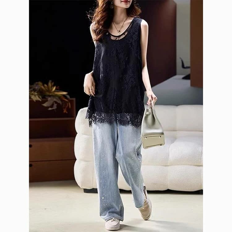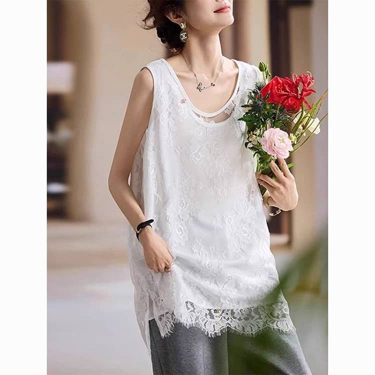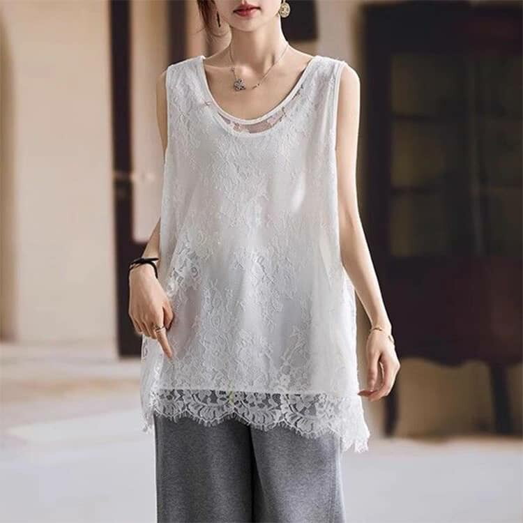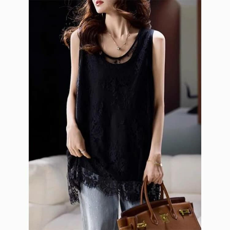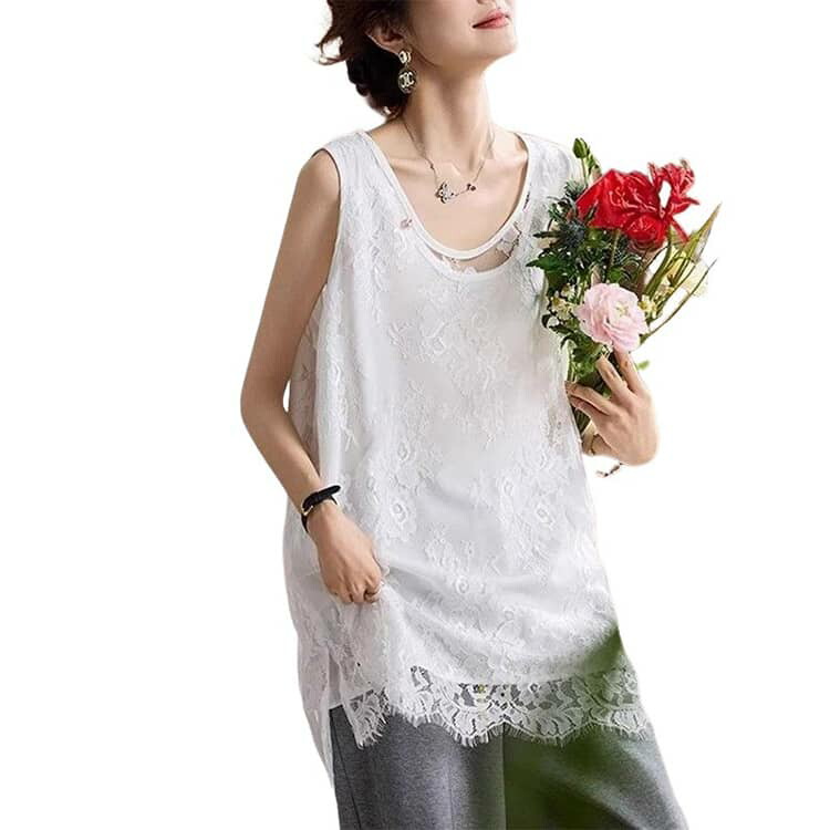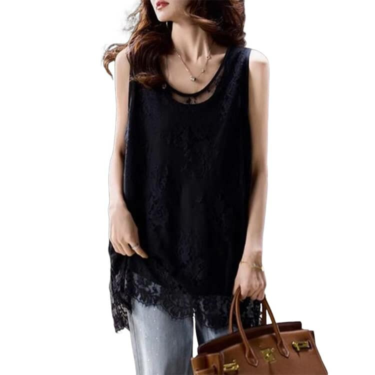 総レース ロング丈 重ね着 お尻が隠れ トップス タンクトップ 早い者勝ち ブラック ホワイト M L XL 2XL 3XL
