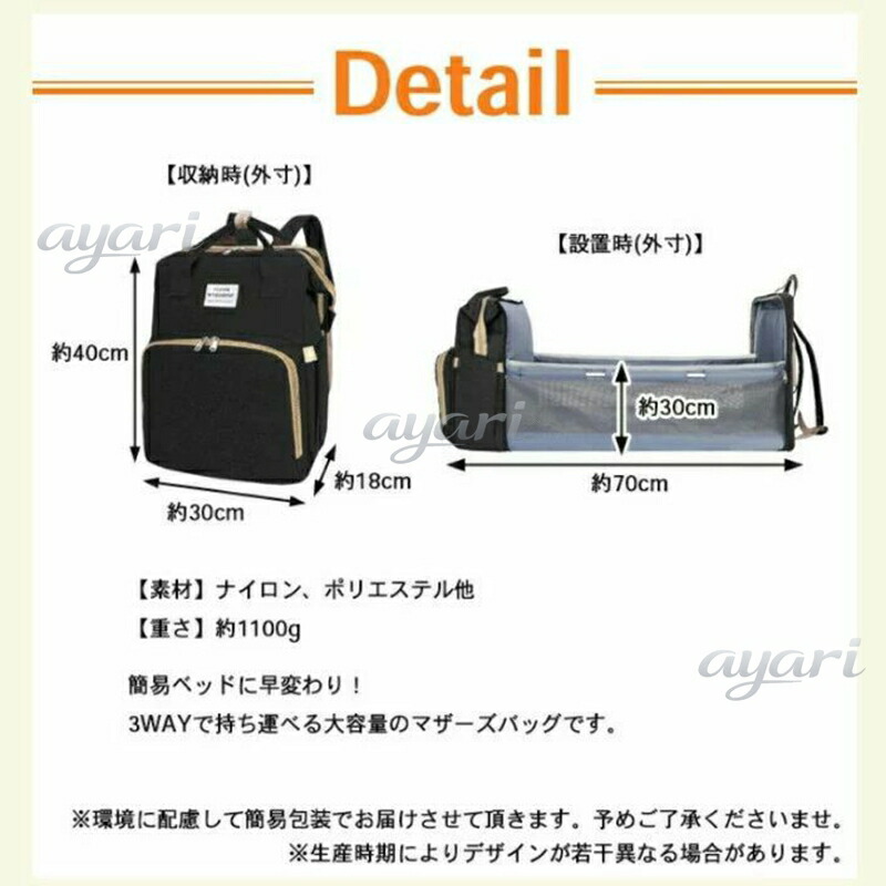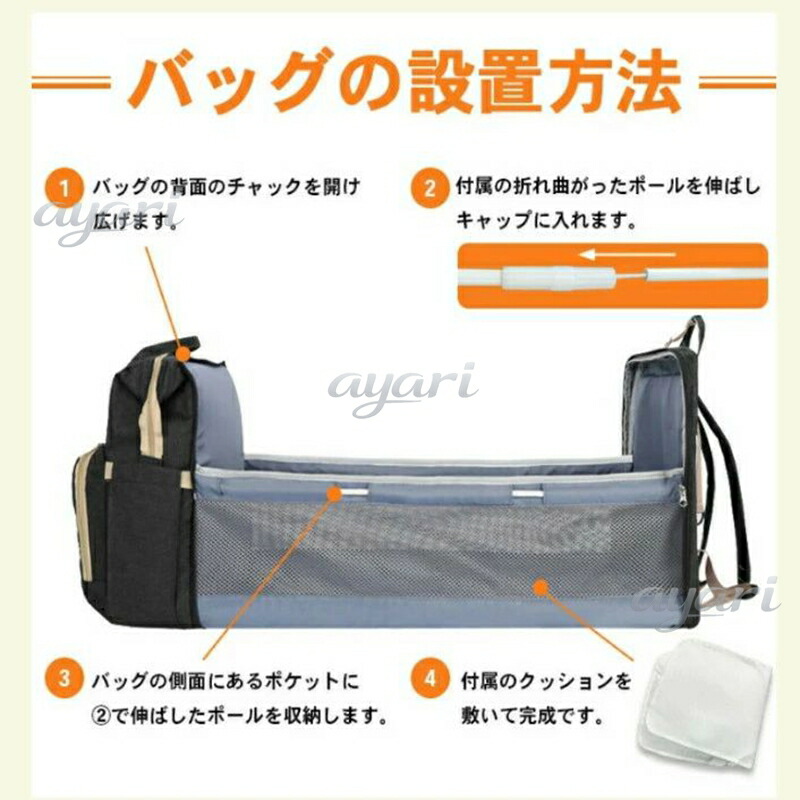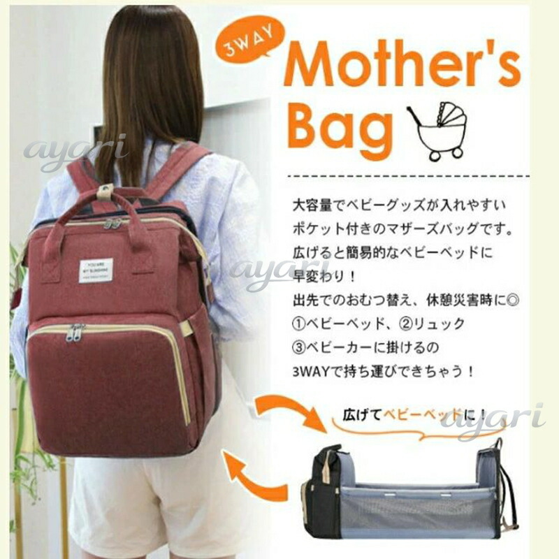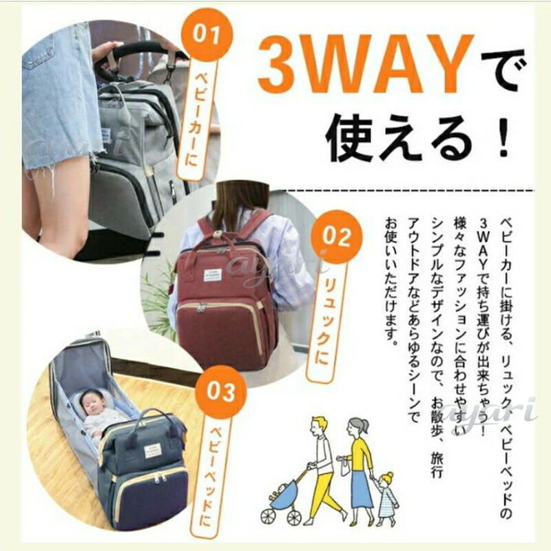 マザーズバッグ ベビーベッドリュック 大容量 ママリュック 【全5色】折りたたみ 3WAY 持ち運びベッド 出産祝い プレゼント