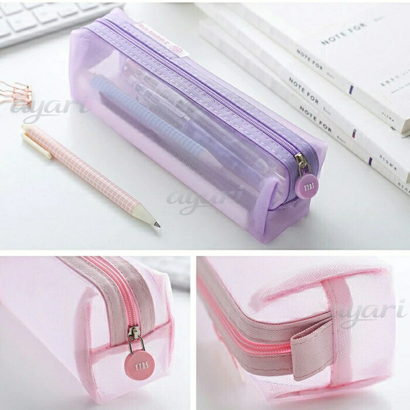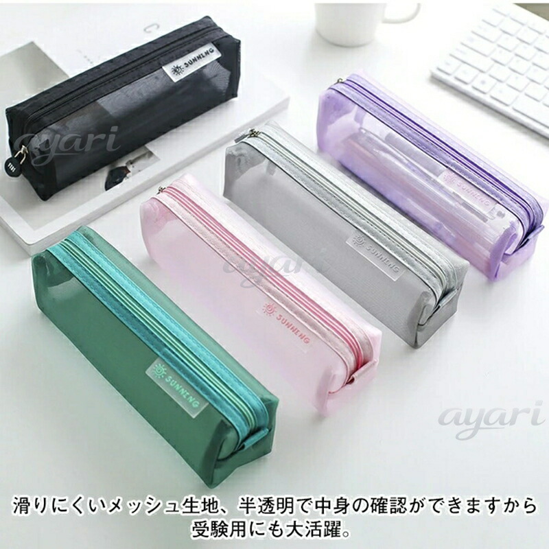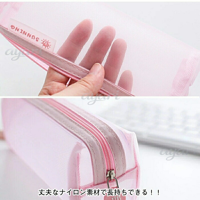 一部 透明ペンケース メッシュ ペンケース 母の日 かわいい ピンク シンプル 大容量 クリア ペンポーチ 透明 筆箱 薄型 学生 小物入れ 無地 入学祝い 中学生 パープル グレー ブラック 緑 白