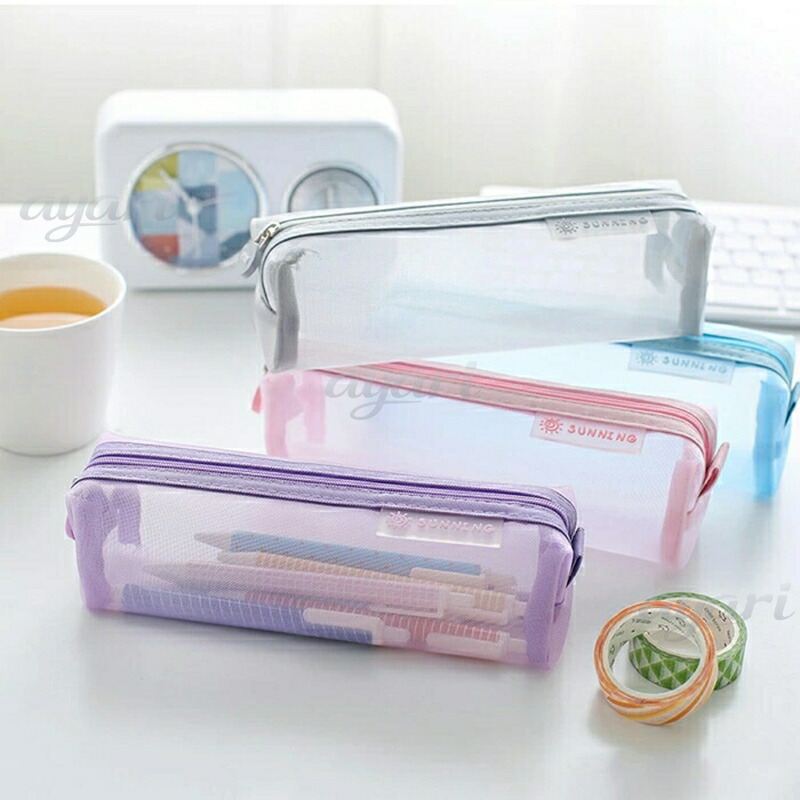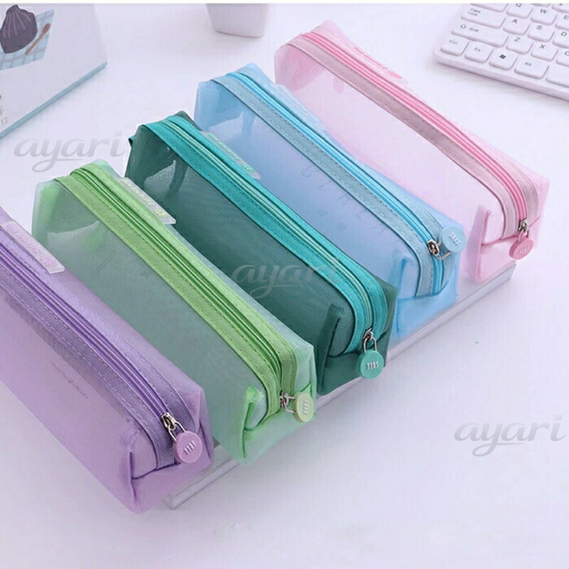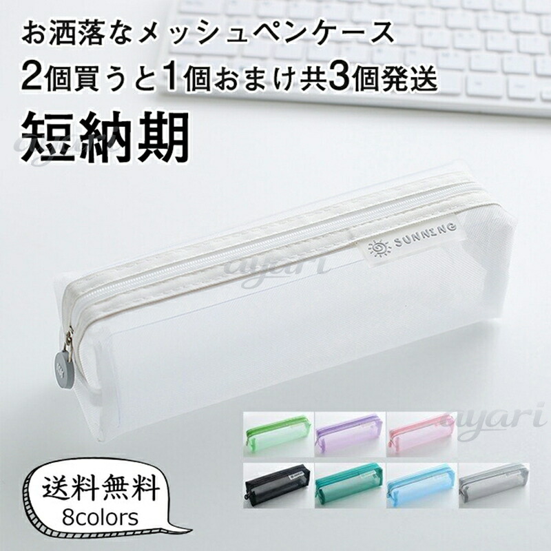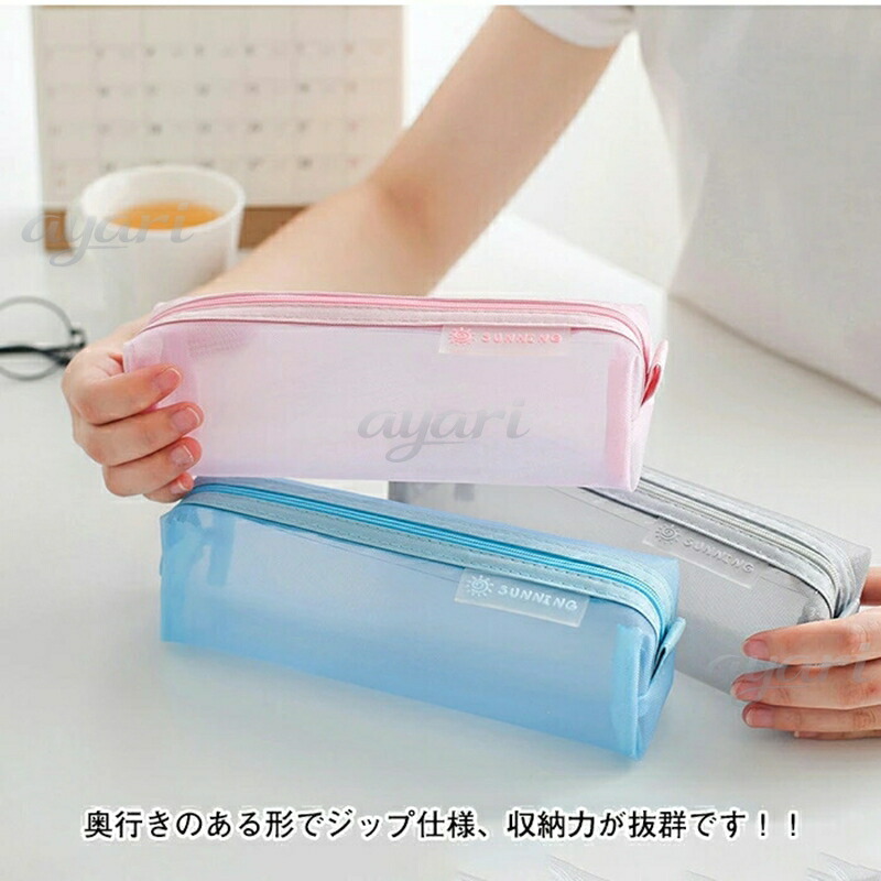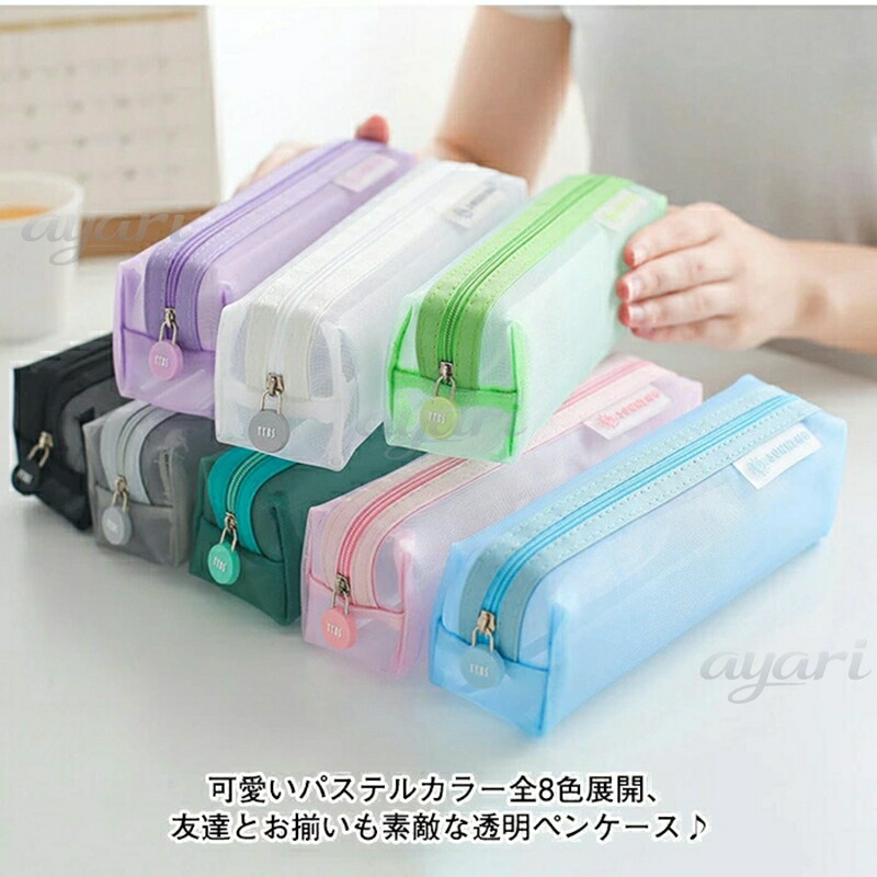 一部 透明ペンケース メッシュ ペンケース 母の日 かわいい ピンク シンプル 大容量 クリア ペンポーチ 透明 筆箱 薄型 学生 小物入れ 無地 入学祝い 中学生 パープル 白 グレー ブラック 緑 ブルー