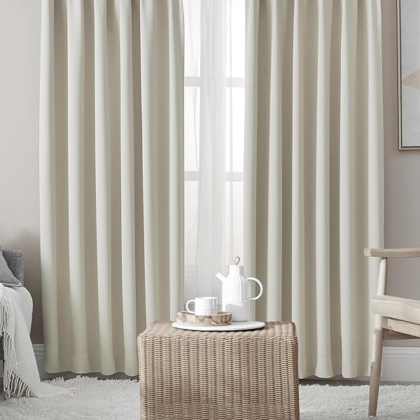 カーテン 1級遮光 4枚セット 幅100cm丈110cm ベージュ 断熱 防寒 防音 省エネ 厚手 無地 おしゃれ 洗える リビング用 (カーテン2枚・レース2枚)