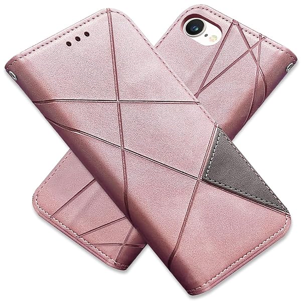 【おしゃれな外観】シンプルなラインが絡み合い、芸術的なデザインを形成しています。「ローズゴールド」と「グレー」の組み合わせは、携帯ケースの色が退屈ではなく、ユニークで目立つものになります。(複数の色から選択できます)