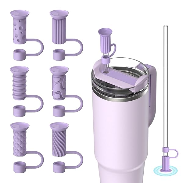 ストローキャップ 6個セット 吸盤付き スタンレー(Stanley)タンブラー 30/40oz 対応 9~10mm ストロートッパー パープル