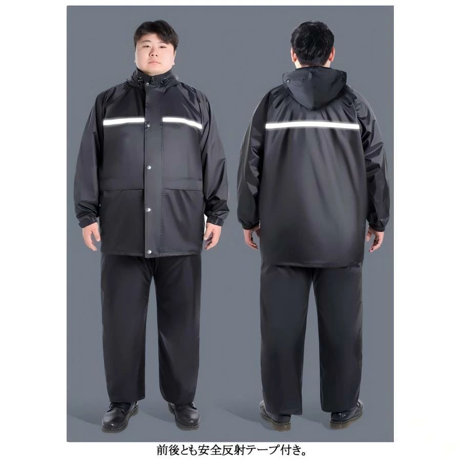 ビッグサイズ 大きいサイズ レインコート 2点セット 上下セット メンズ レディース レインスーツ 反射テープ付き ポケット レインウェア