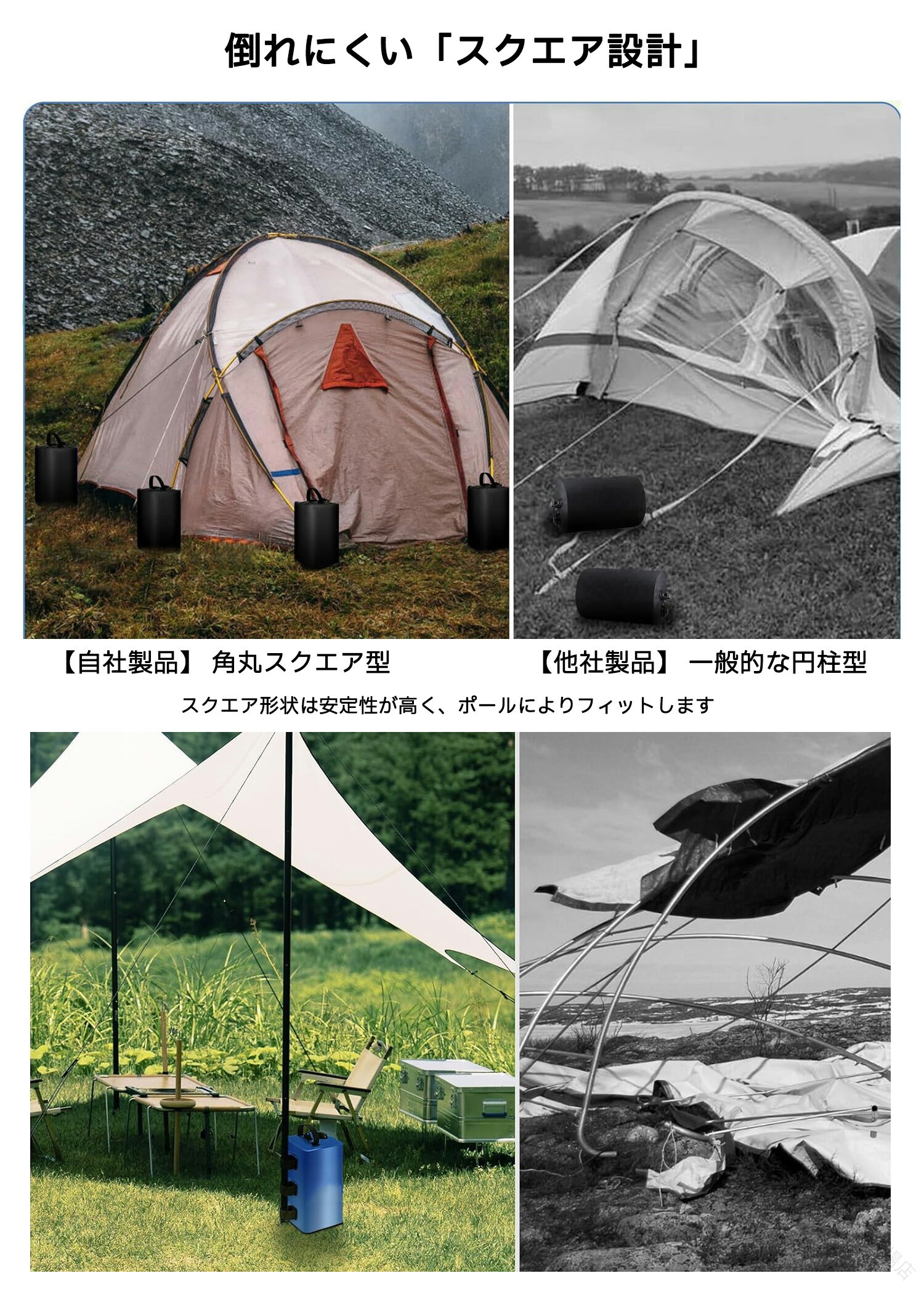 .テント 用 ウエイト マルチ ウェイト 20KG 10KG 4個 セット 10L 20L は 折りたたみ 収納 可能 な 注水 式 タンク 付き で 持ち運び が 簡単 です。 固定 用 バンド テープ と 砂袋 を 使用 し、 タープ テント や イベント 用、 キャンプ、 屋内 屋外 で 幅広く 活躍 します。 重り おもり として も 最適 な 商品 です。。