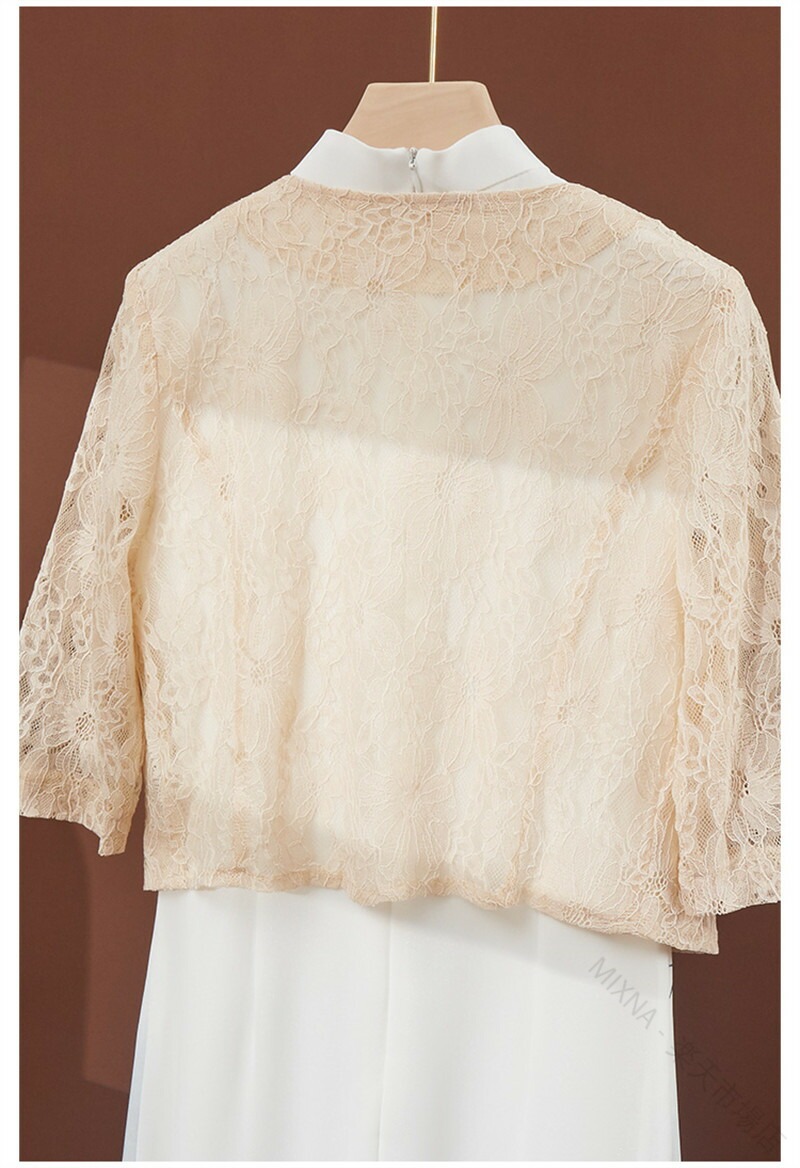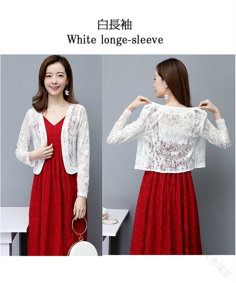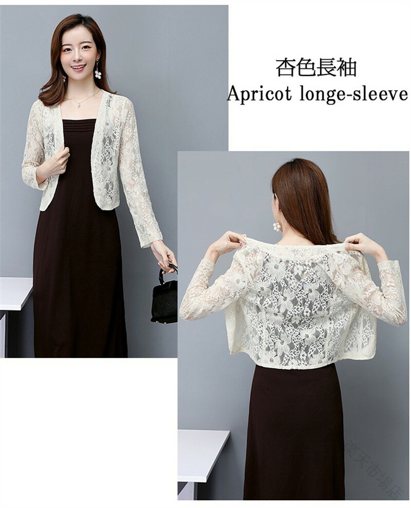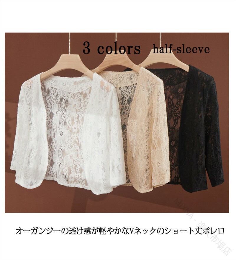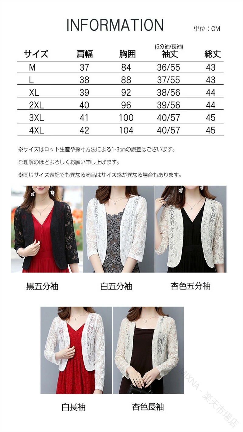 レース ボレロ ジャケット 羽織 総レ トップス カーディガン ボレロ 新作 杏色半袖 黒五分袖 白五分袖 杏色五分袖 白長袖 杏色長袖 M L XL 2XL 3XL 4XL