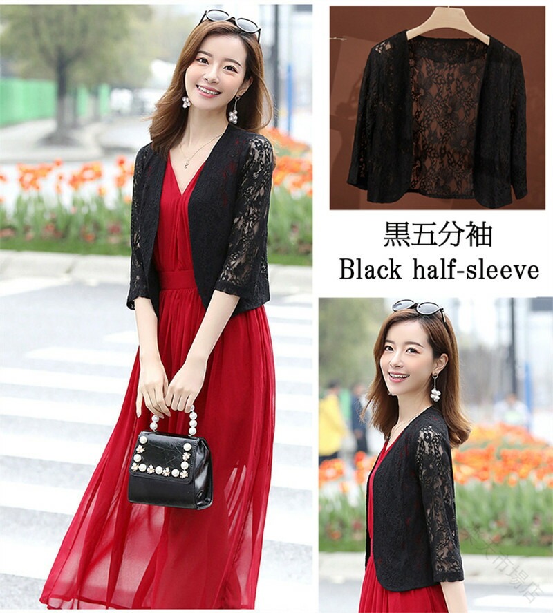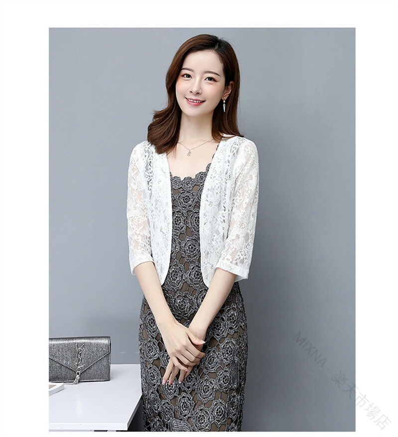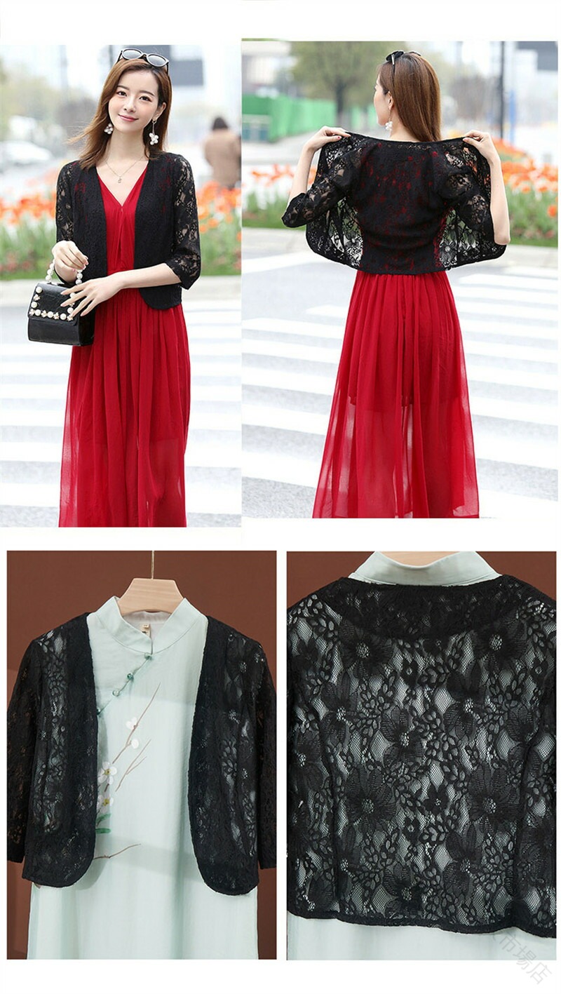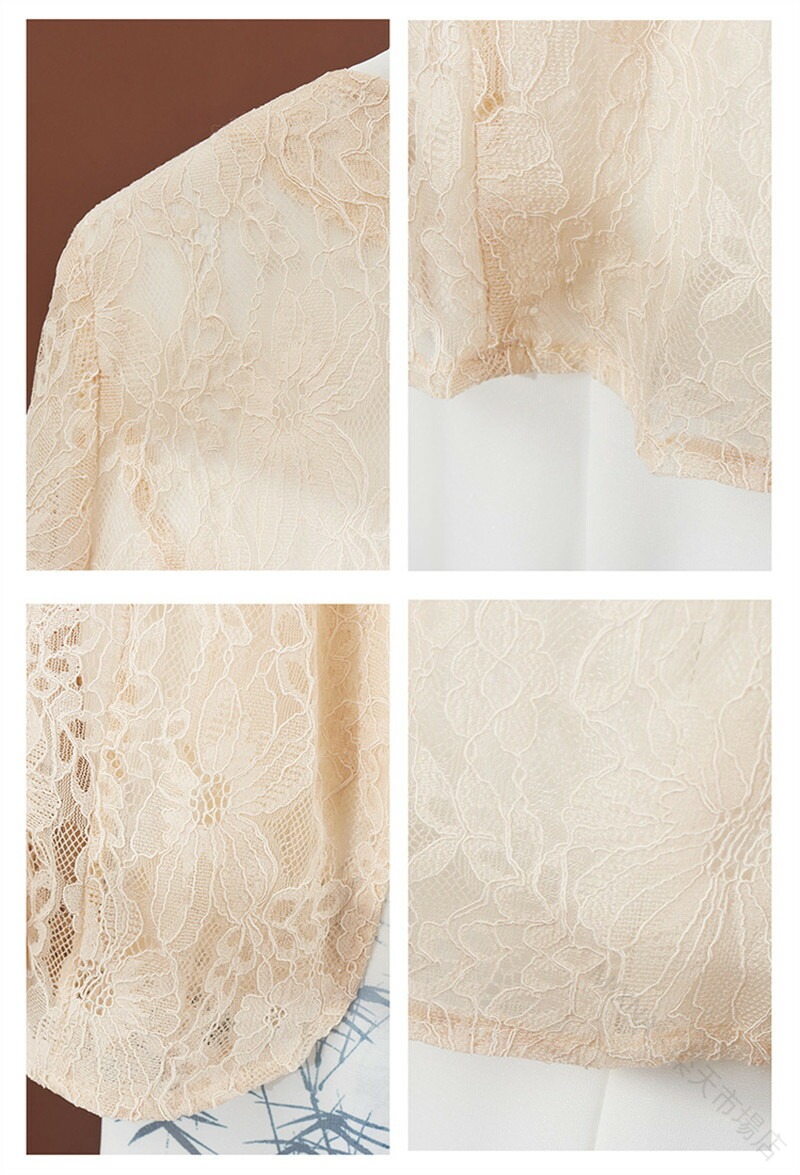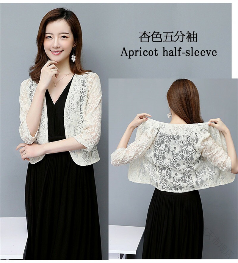 レース ボレロ ジャケット 羽織 総レ トップス カーディガン ボレロ 新作 杏色半袖 黒五分袖 白五分袖 杏色五分袖 白長袖 杏色長袖 M L XL 2XL 3XL 4XL