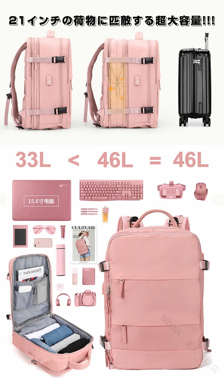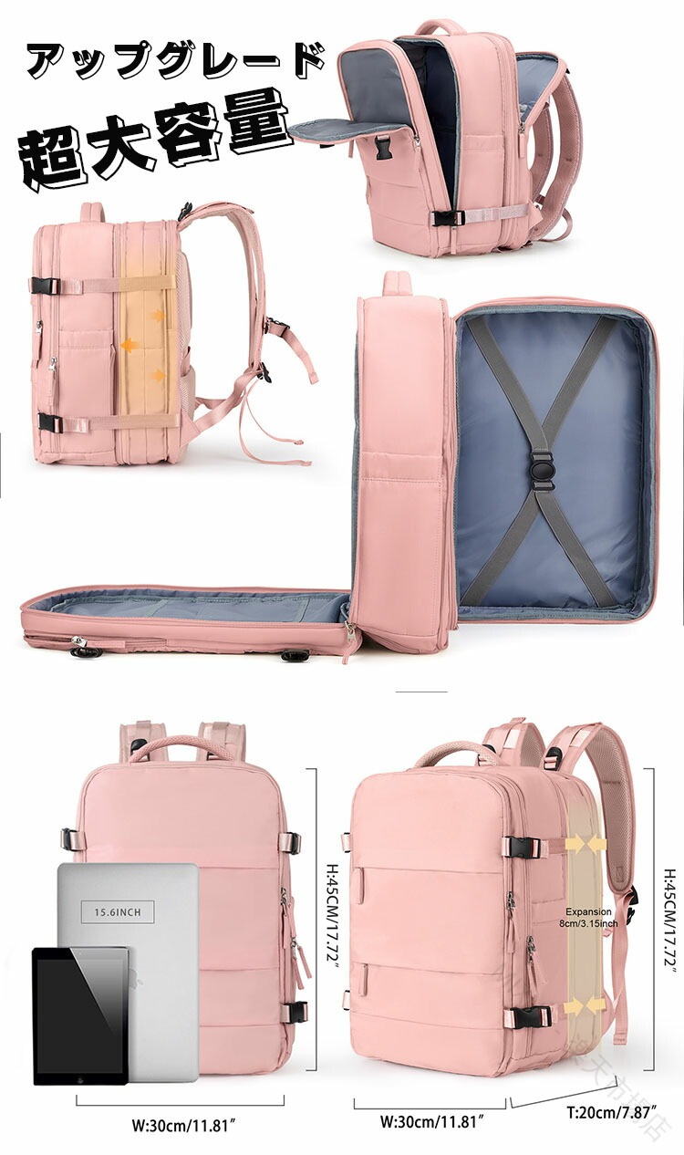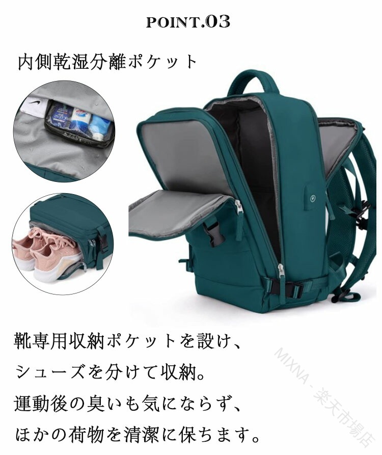 .リュックサック マザーズバッグ ママリュック は 特大 容量 で 乾湿分離 機能 を 備え 多収納 かつ 防水 性能 も あり 折りたたみ 可能 な トラベルバッグ です。3泊 4泊 の 旅行用 や 出張、入院、産院、林間学校、修学旅行、通学、クラブ、部活、合宿、宿泊学習 など 幅広い シーン に 対応 し、 レディース 用 として きちんと した デザイン で 機内持込 も 可能 な 大きめ サイズ です。。