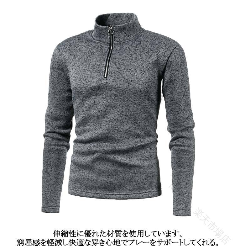 春秋 トップス 無地 スポ ハーフジップ モックネックシャツ メンズ ポロシャツ ハイネックTシャツ 長袖 トレーナー ゴルフウェア