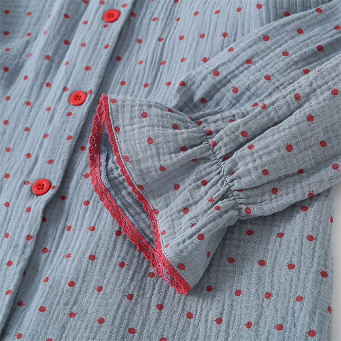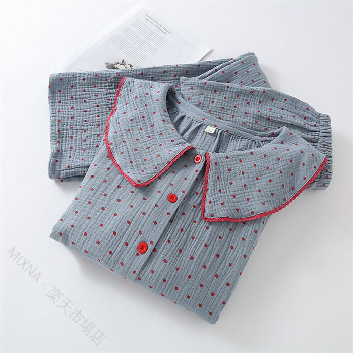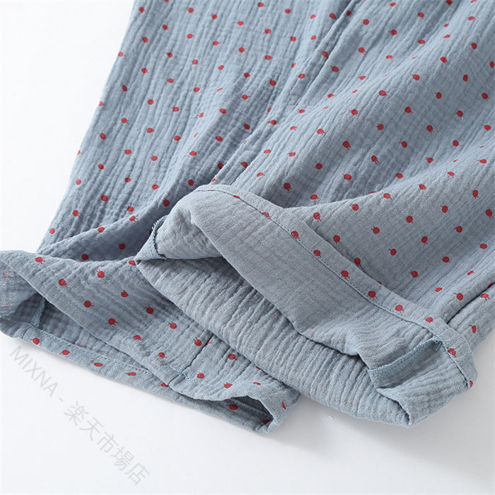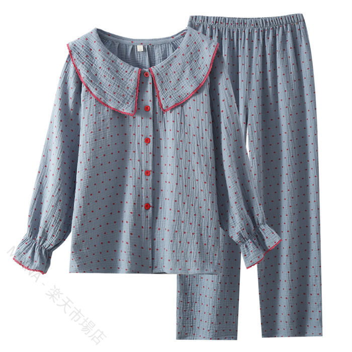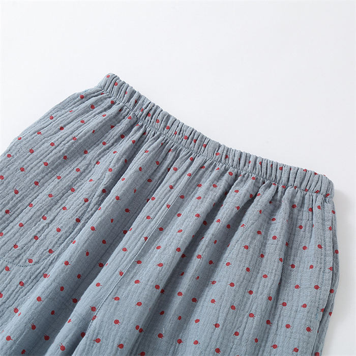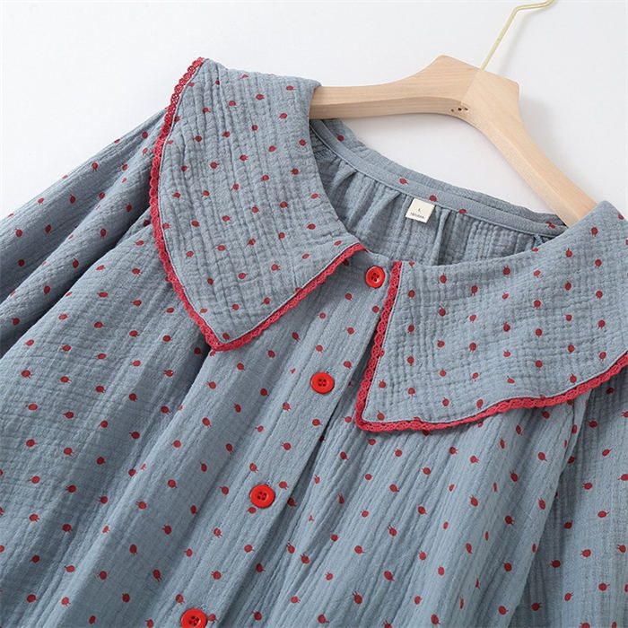 ガーゼパジャマ レディース ダブルガーゼ 綿100% 春秋 長袖 ドット柄 2点セット ルームウェア ゆったり 前開き 柔らかい 快適 部屋着 寝間着 通気性 ウエストゴム ロングパ ふんわり肌ざわり