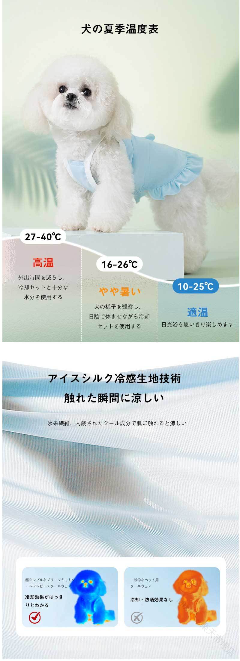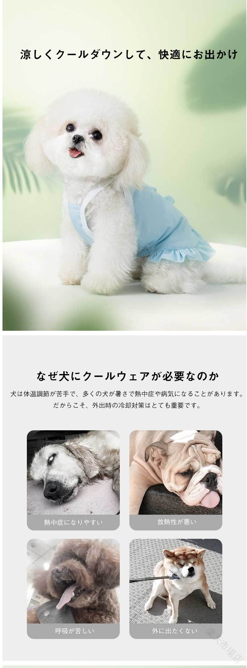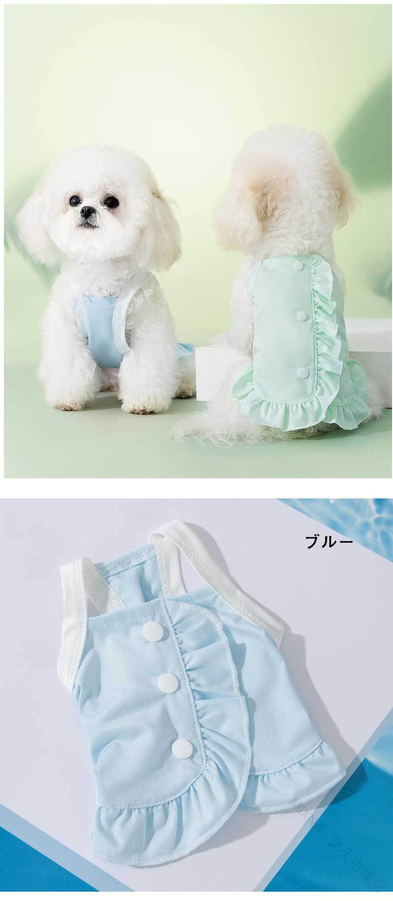 熱中症 対 とにかく冷たい 接触冷感 背中開き フリル付き 速乾 タンクトップ UVカット 通気性 紫外線カット 服 夏 犬 ワンピース