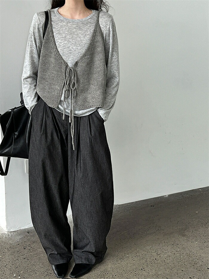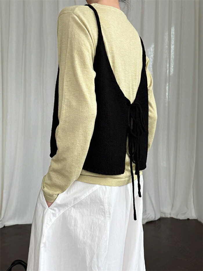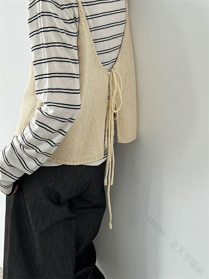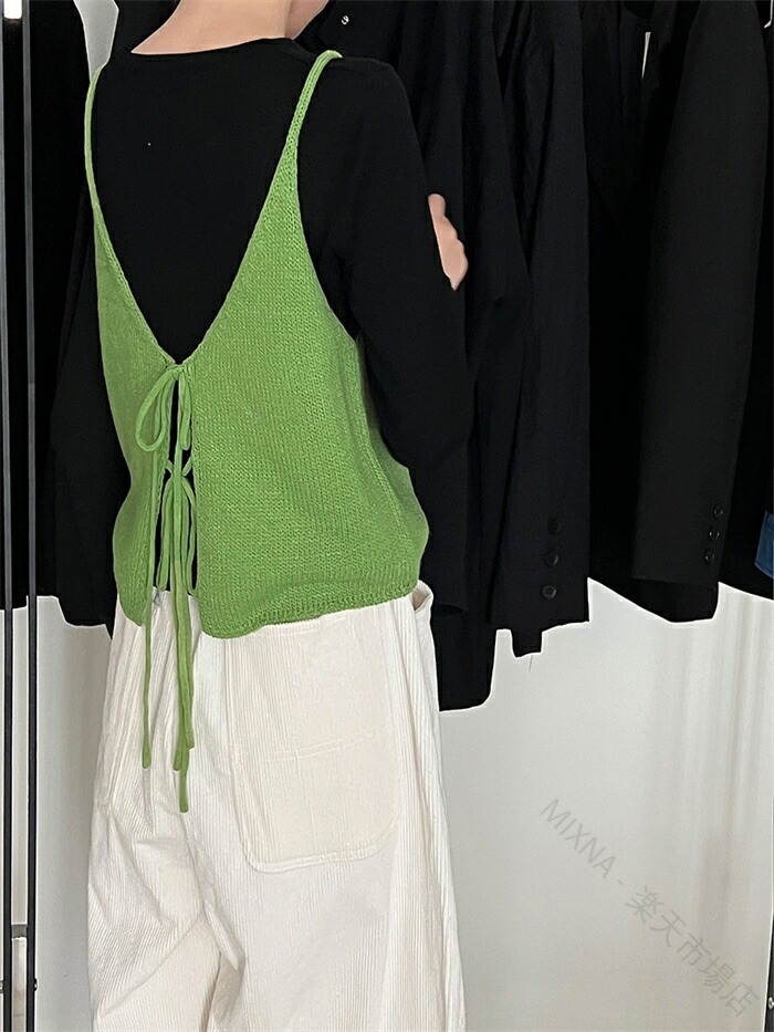 ベスト Vネック ビスチェ キャミソール レディース 春秋 リボン付き ニットベスト ショート丈 前後2way キャミビスチェ 重ね着 コーデ ジレ レイヤード 着回し vネックベスト キ カジュアル