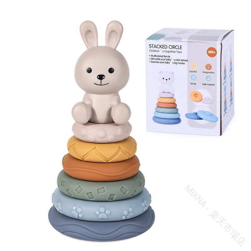 赤ちゃん 指先 知育 玩具 積み木 型 はめ ペグ さし スタッキング タワー コアラ ウサギ クマ 亀 6個 入り 可愛い 動物 シリコン 柔らかい 形 合わせ 感覚 訓練 早期 開発 あそび