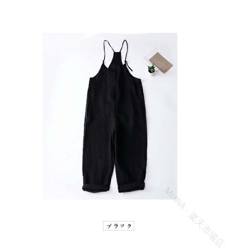 サロペット パンツ 夏 レディース カジュアル 大人 サロペットパンツ オールインワン ワイドパンツ 大きい サイズ ゆったり 体型カバー リネンパンツ 綿麻 部屋着 シンプル ナチュ バルーンパンツ