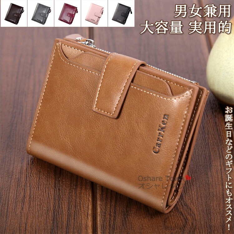財布 二つ折り財布 折財布 コンパクト スリム ミニ 小銭入れ メンズ レディース 男女兼用 学生 祝い ギフト 誕生日 プレゼント 大容量 実用的 シンプル PU 上質 収納力 人気