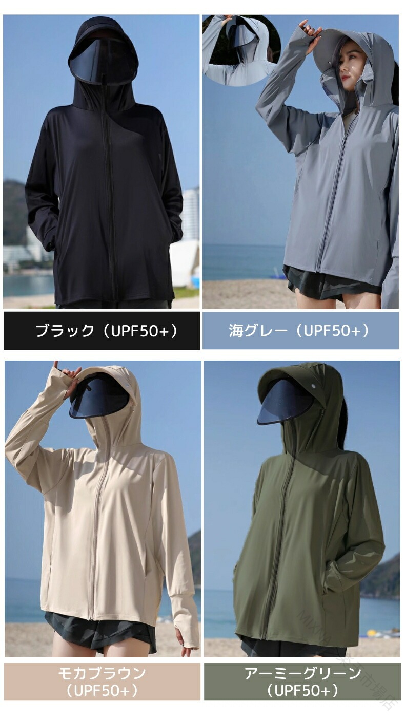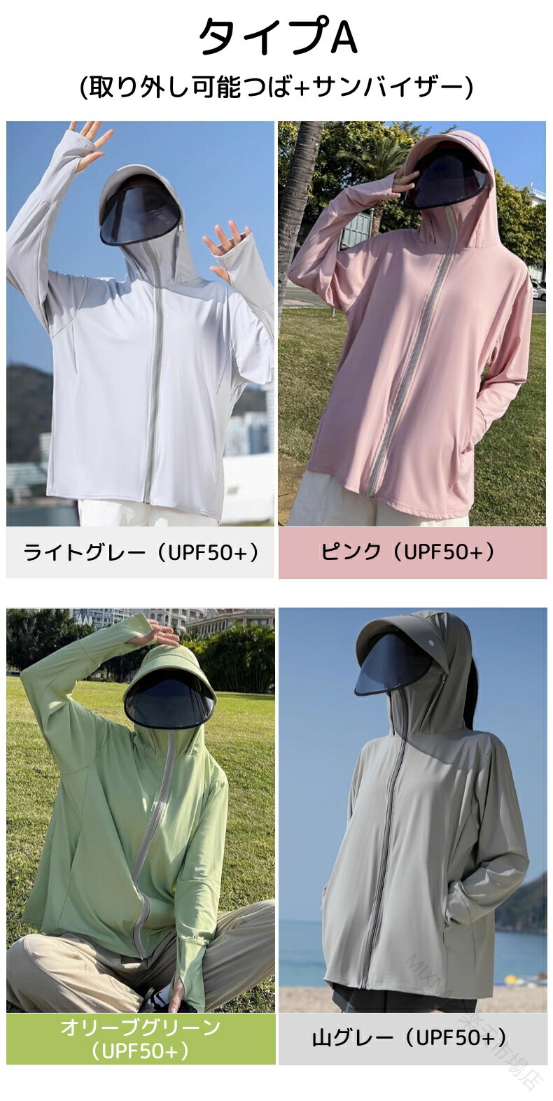 UVカットパーカー レディース 長袖 レディースファッション 続々入荷中 ライトグレー ブラック オリーブグリーン モカブラウン ミリタリーグリーン 山グレー 海グレー ピンク タイプA(サンバイザー付き) タイプB(サンバイザーなし)