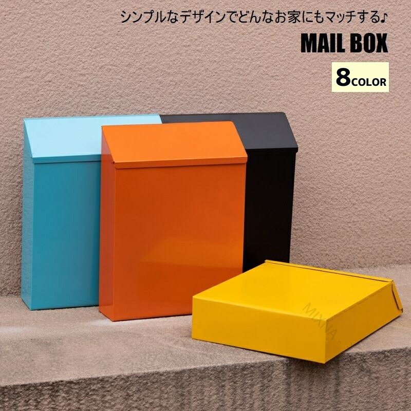 郵便ポスト メールボックス 壁掛け 鍵 ホワイト ブラック オレンジ イエロー レッド イエローグリーン レイクブルー ピンク