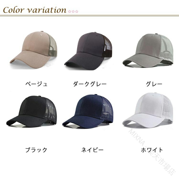 春夏 メッシュキャップ つば広 つば長 バッグ 小物 ブランド雑貨 豊富 ベージュ ダークグレー グレー ブラック ネイビー ホワイト L(60-63cm) XL(64-68cm) S(56-60cm)