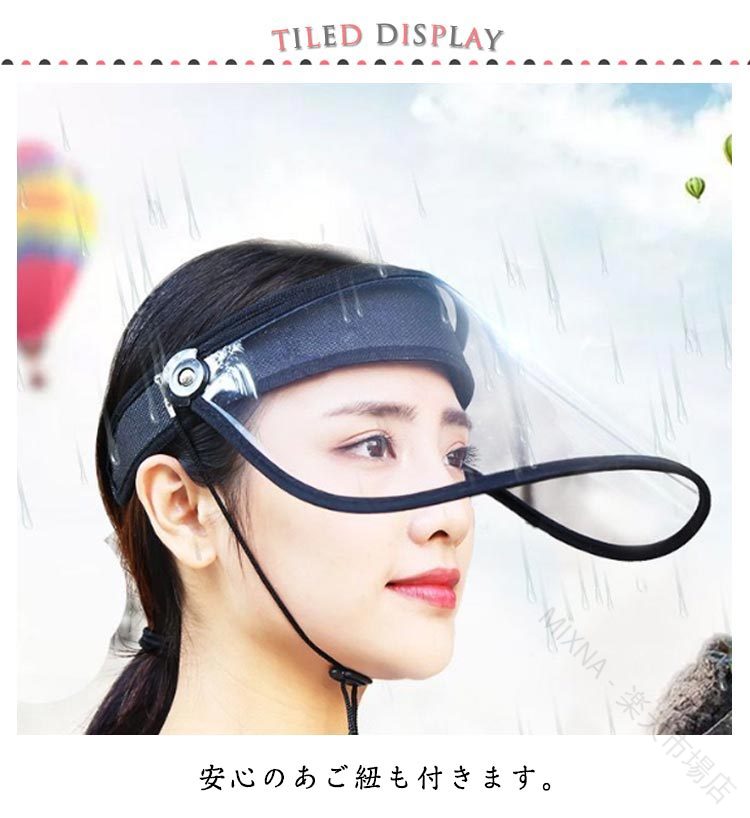 レインバイザー メッシュ ずれない 固定 調節可能 あご紐付き ワイド クリア 軽い 快適 視界 顔 カバー 自転車用 雨よけ 雨バイザー レイングッズ 通勤 雨の日 自転車 男女共用 レデ 梅雨対策