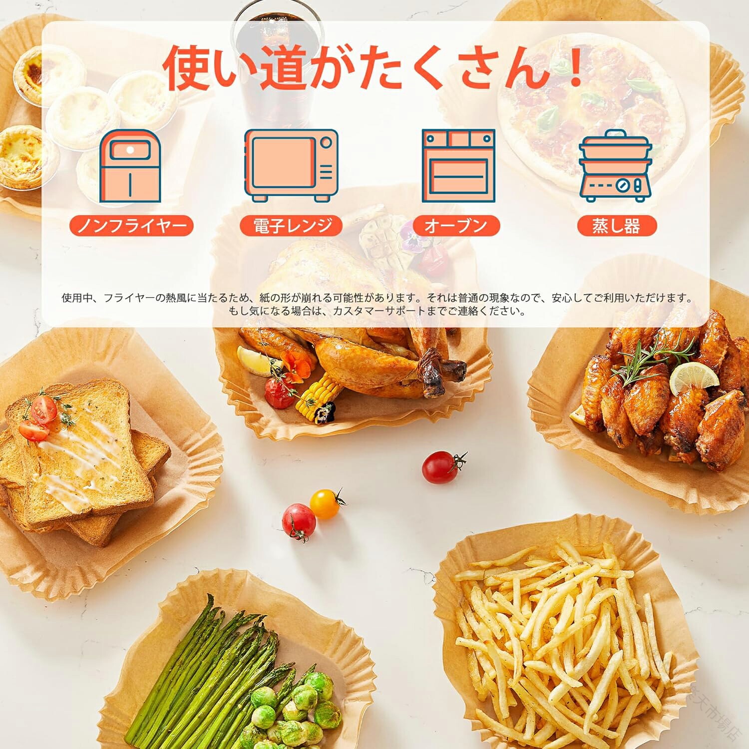 エアフライヤー 用紙 3-4.5L 適 キッチン用品 食器 調理器具 続々登場 丸形 四角形