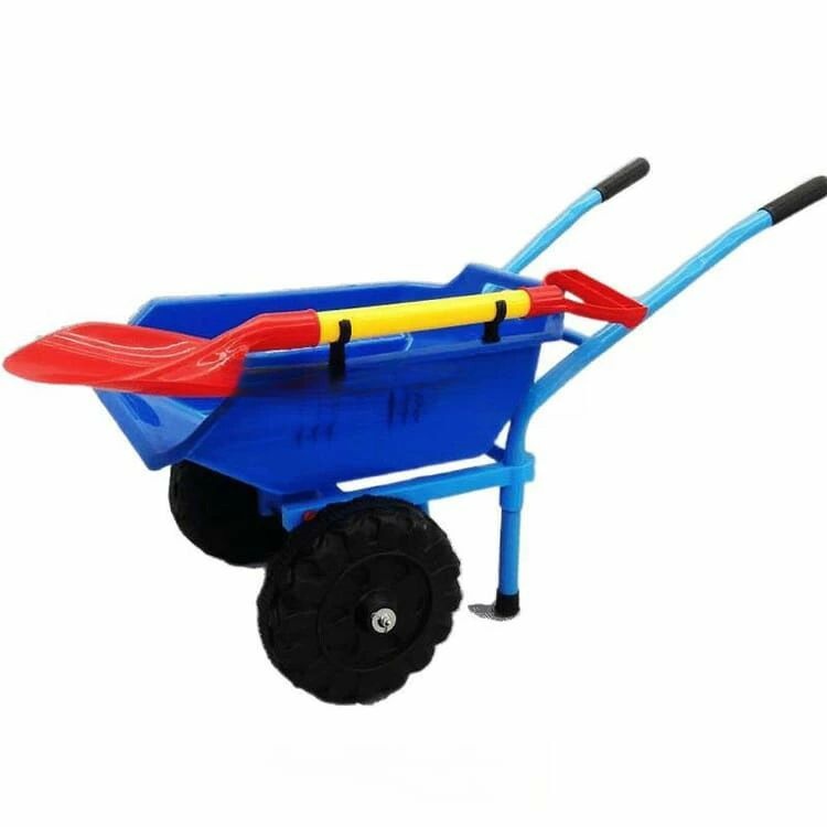 一輪車タイプの猫車(手押し車)、2シャベルがセットになっており、砂場遊びや水遊び、おままごと遊びにも活躍します。