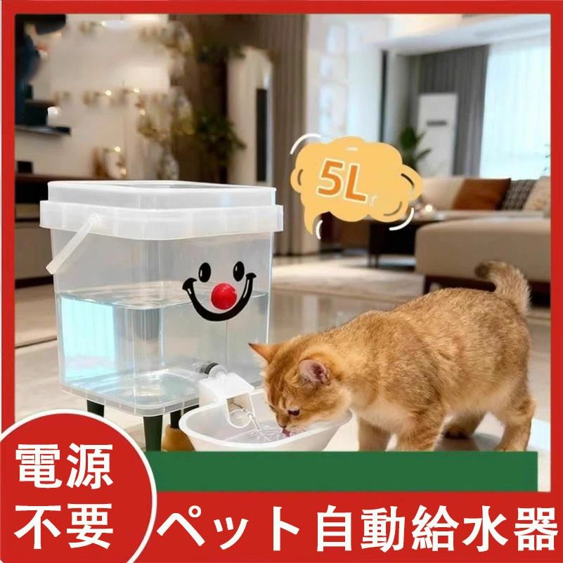ペット自動給水器 大容量 5L 3L 電気不要 屋内 屋外兼用 猫用 犬用 耐倒れ設計 清潔保持 旅行 留守番に最適 モダンデザイン 猫犬 うさぎ用 熱中症を防ぐ 漏れ防止 ペット用品 お留守番対応