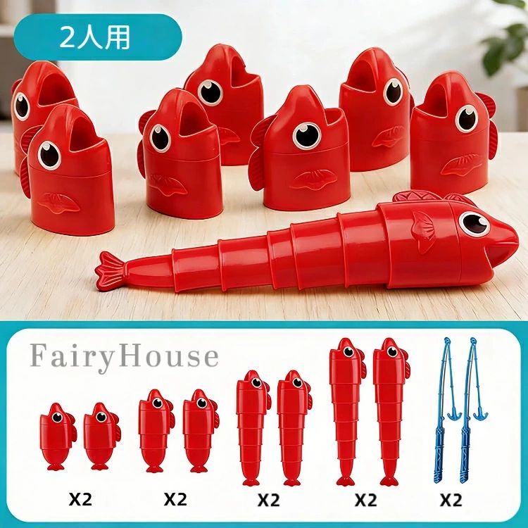 2人用:魚 × 8匹 + 釣り竿 × 2本 + 目玉ステッカー