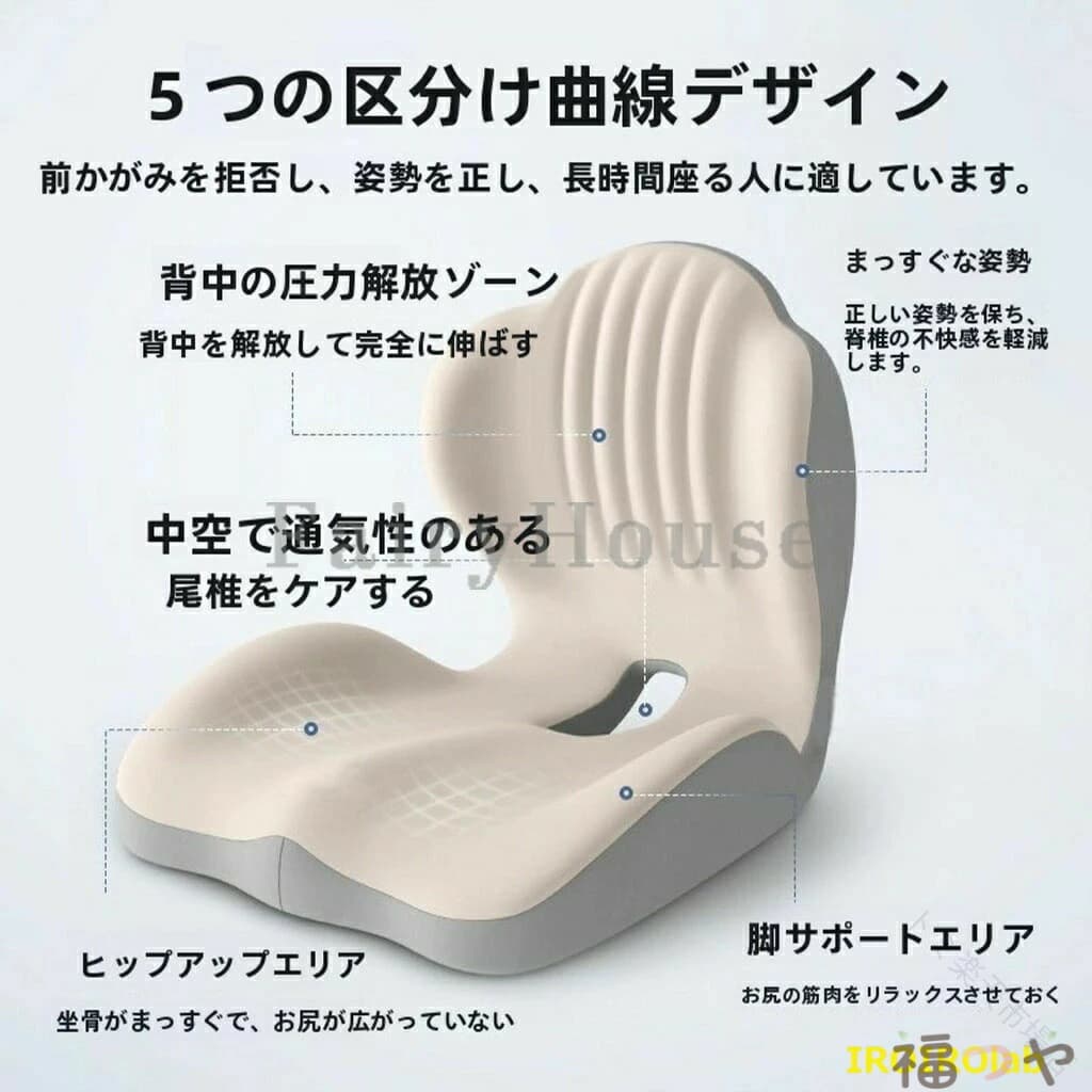 ※商品情報 商品名:姿勢矯正クッション カラー:ブラック、ブラックグレー、ベージュグレー、イエロー、ピンク、グリーン、ブルー、グレー 材質:繊維生地+メモリーコットン芯 サイズ:44*37*30cm(手作業で測定する場合は、1~3 cmの誤差を許容してください。実物を基準にしてください) 【3D人間工学設計】体の曲線にぴったりフィットする設計で、腰をしっかり支え、長時間の座位でも快適な姿勢をキープ。腰痛軽減と姿勢改善をサポートします。 【圧力分散&骨盤サポート】骨盤圧力分散エリアで骨盤を優しく支え、圧力を分散。腰椎を保護し、背骨を守ることで、自然な姿勢に導きます。 【直立サポート&腰痛予防】腰椎の第四椎をサポートし、腰痛を効果的に軽減。腰部筋肉をリラックスさせ、圧力を解放する三点サポート機能付き。腰サポートエリアが背骨をしっかりと支え、猫背を防止して正しい姿勢をキープします。 【高耐久・簡単お手入れ】汚れに強い高耐久生地を使用。お手入れが簡単で、長期間使っても安心。耐摩耗性・耐汚染性に優れ、日常的な使用にも最適です。 【多用途使用&快適な座り心地】オフィスや学習、リラックスした自宅での使用に最適。ヒップシェイプエリアと脚部サポートにより、快適で健康的な座り心地を提供します。 【使用対象】当社の低反発腰クッションと座布団一体型は、長時間座る人や運転する人に最適です!オフィスやキッチン、飛行機、車椅子、ソファ、体育館などの椅子にも適しています!誕生日、母の日、父の日、バレンタインデーなどのプレゼントとしてお送りします。 ※ご購入頂前にかならずご確認下さいませ。 ※商品ページに記載のサイズと商品タグに記載のサイズは、採寸方法の違い(ヌード寸法・製品寸法)により表記が異なる場合がございますので予めご了承下さい。