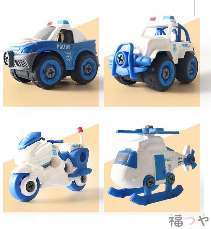 4個セット 働く車 おもちゃ ネジ 組み立て 飛行機 車 くるま 丈夫 ミニカー バイク 乗り物 男の子 クリスマス 2歳 3歳 4歳 プレゼント