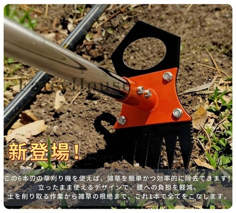 草取りや草刈りを手軽に効率よく進めたい方にぴったり。草取りレーキや草刈り鎌としても活用でき、雑草を根元からしっかり除去します。ブルブル除草機や除草熊手の代わりとしても使える省スペース設計。一家に一台、あると便利な実用的なツールです。