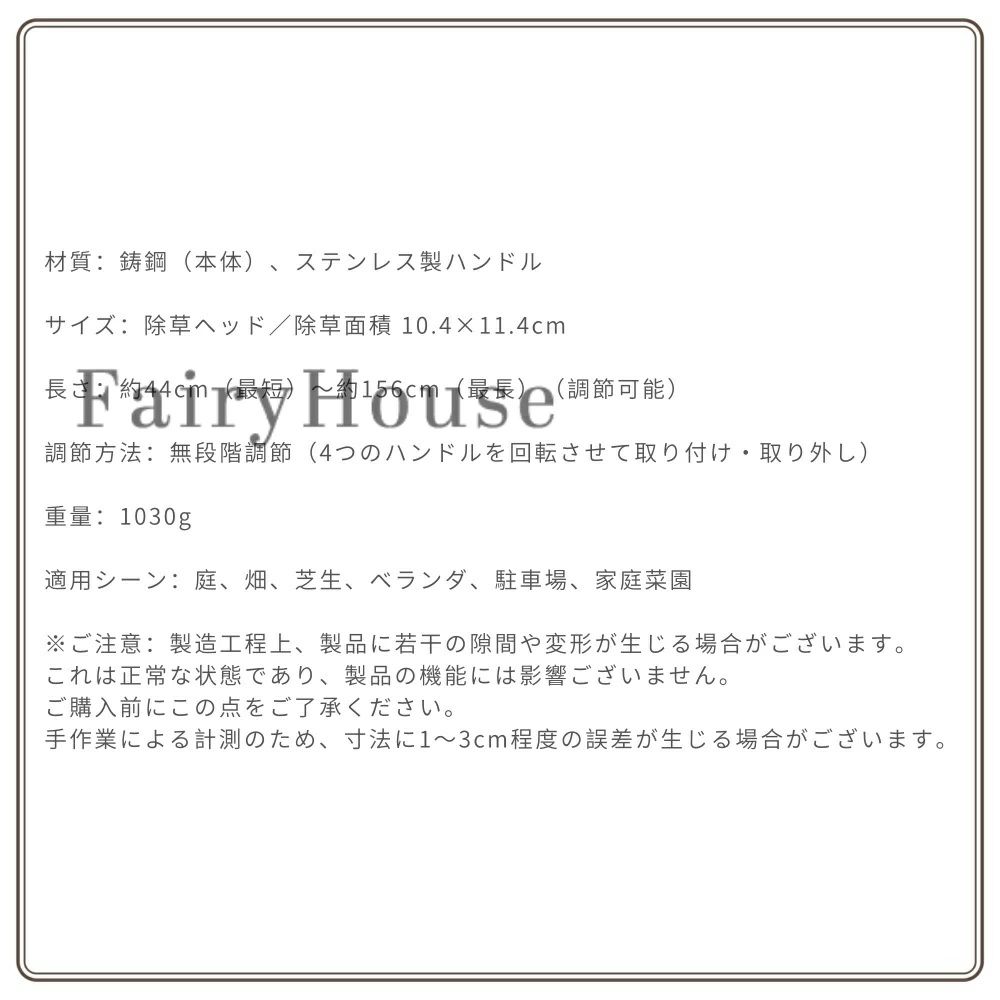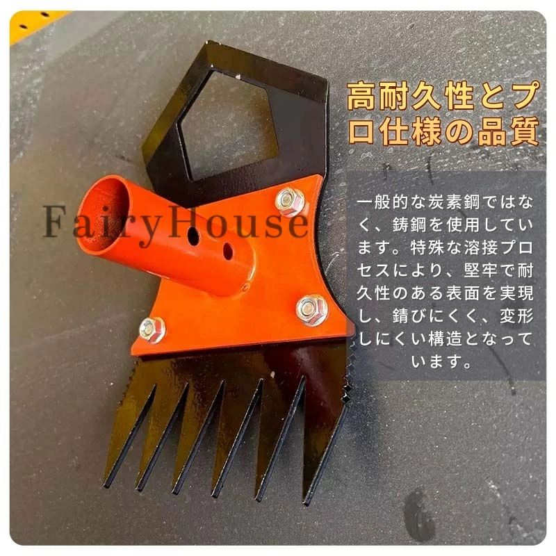 一般的なカーボンスチールではなく、鋳造スチールを採用し、特殊溶接によって頑丈に仕上げました。錆びにくく歪みにくいのはもちろん、使用後は水で洗い流すだけのお手入れ簡単設計。長期間愛用できる本格的な草取り工具をお探しの方にぴったりです。