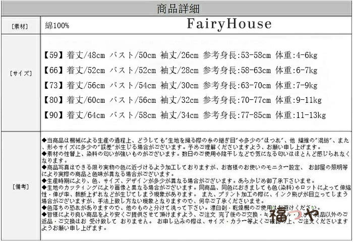 【90】着丈/64cm バスト/58cm 袖丈/34cm 参考身長:77-85cm 体重:11-13kg