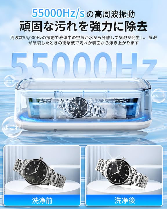 超音波洗浄機 メガネクリーナー 洗浄機 小型超音波洗浄器 650ml大容量55000Hz強力振動 眼鏡洗浄機 超音波クリーナー 3段階タイマー機能