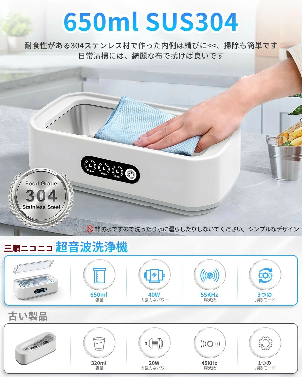 【650ml大容量、幅広い使用シーン】テーブルに置いても目立たないコンパクトなサイズで、650mlの大容量です。洗浄機超音波は日常生活のほとんどのアイテムをカバーする幅広いアプリケーション、眼鏡メガネ、ピアス指輪ジュエリーやブラシなど様々なものを入れて洗えます。
