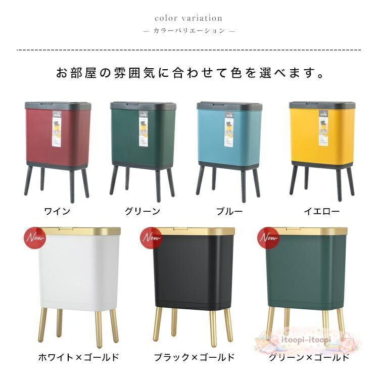 ゴミ箱 北欧風 ワンプッシュ プッシュ グリーン イエロー ブルー ワイン ホワイト×ゴールド グリーン×ゴールド ブラック×ゴールド
