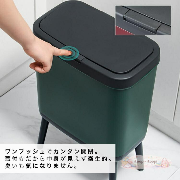 ゴミ箱 北欧風 ワンプッシュ プッシュオープン 足が高い キッチンゴミ箱 おしゃれ 生ごみ 密閉 リビング プラスチック スリム 15L 家庭ごみ箱