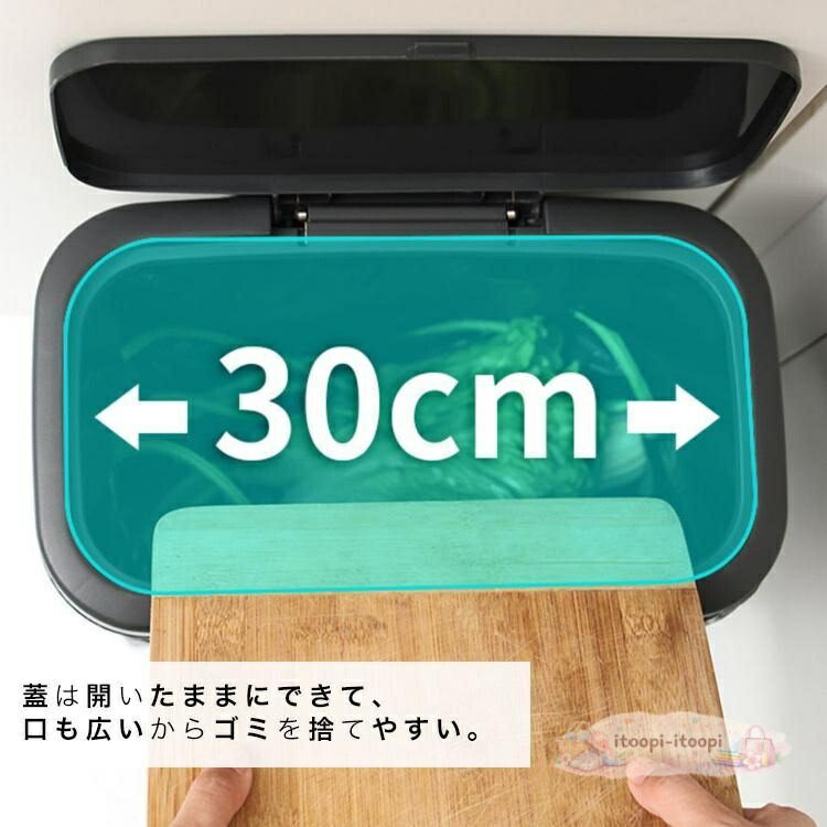 蓋は開いたままにできて、口も広いからゴミを捨てやすい構造。