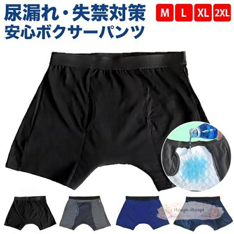 失禁パンツ メンズ 尿漏れ 男性用 に メンズ インナー 下着 ボクサーパンツ 人気 ブラック グレー ブルー ネイビー M L XL 2XL