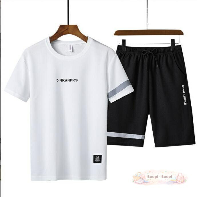 セットアップ夏メンズ上下セット半袖Tシャツハーフパンツスウェット上下スポーツルームウェアキレイめ男の子用パジャマ、女の子用パジャマ