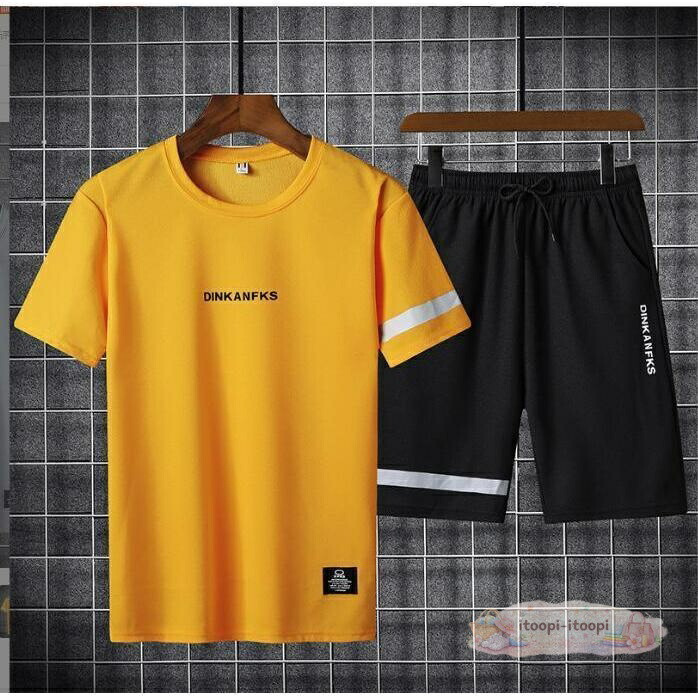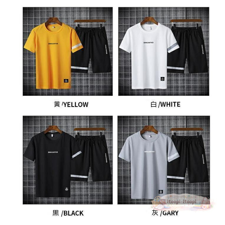 セットアップ夏メンズ上下セット半袖Tシ メンズ ナイトウェア ルームウェア ルームウェア 上下セット 豊富 白 イエロー 黒 グレー M L XL 2XL 3XL 4XL