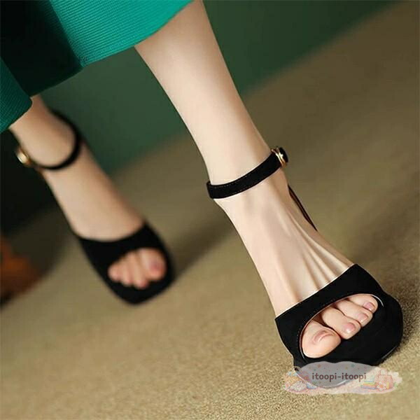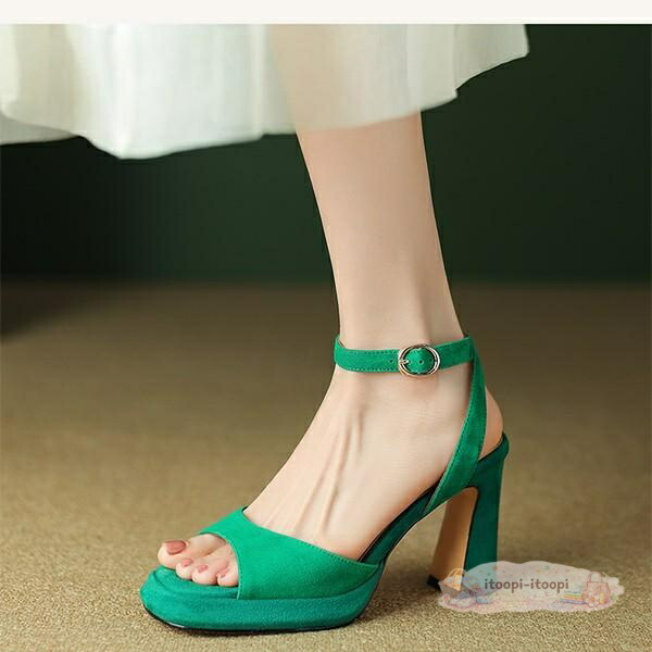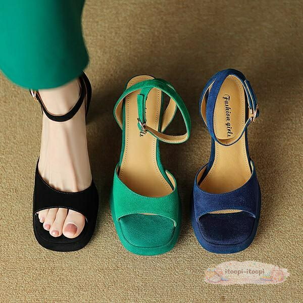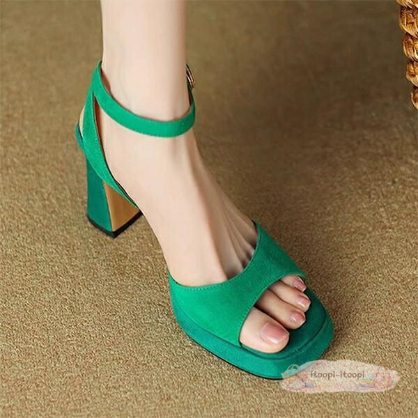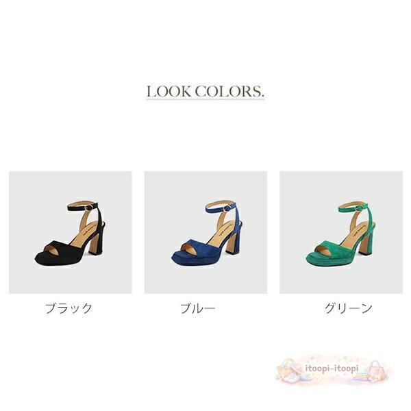 ミュール サンダル レディース 太ヒール きれいめ おしゃれ オフィス 無地 ヒールサンダル 靴 オフィスシューズ 背伸び 厚底 ブラック ブルー グリーン 22.0 22.5 23.0 23.5 24.0 24.5