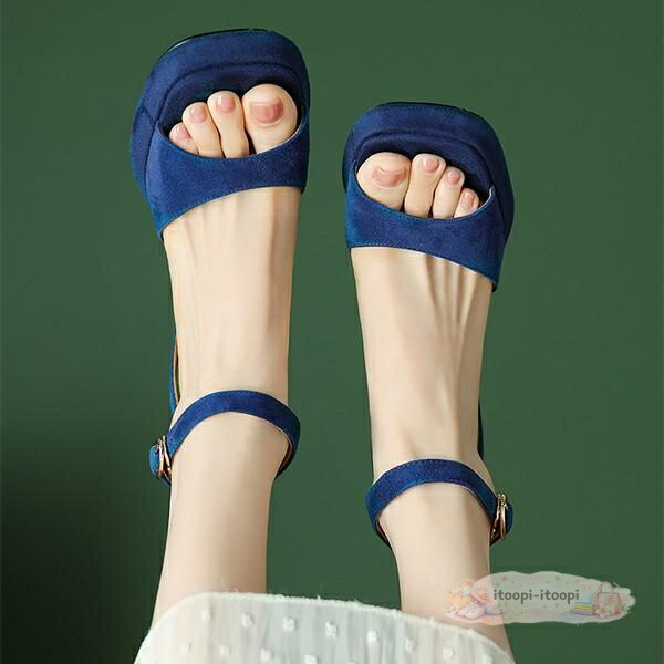 ミュール サンダル レディース 太ヒール きれいめ おしゃれ オフィス 無地 ヒールサンダル 靴 オフィスシューズ 厚底 ブラック ブルー 背伸び
