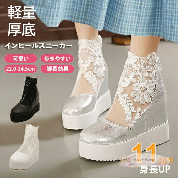 インヒールスニーカー 厚底スニーカー レディース靴 スニーカー 特集 ホワイト ブラック シルバー 22 22.5 23 23.5 24 24.5