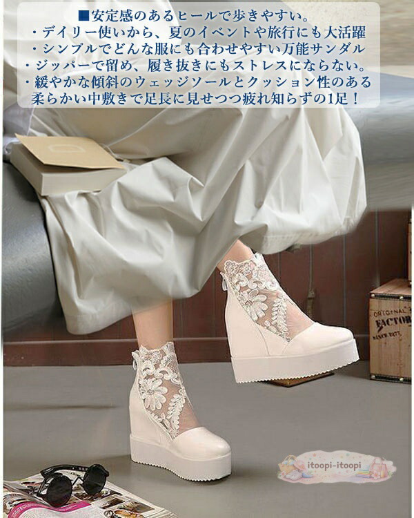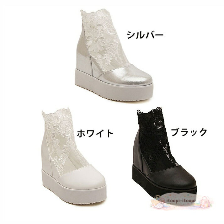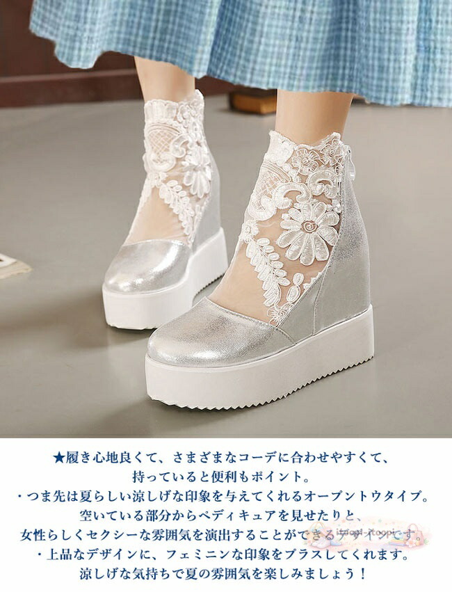 インヒールスニーカー 厚底スニーカー レディース 白 ホワイト 黒 ブラック インヒール 厚底 軽量 歩きやすい シューズ プラットフォームスニーカー ブライダルシューズ レース レースアップ 通気 春 夏 結婚式 和装 靴 おしゃれ かわいい 美脚 ブーツサンダル シースルー