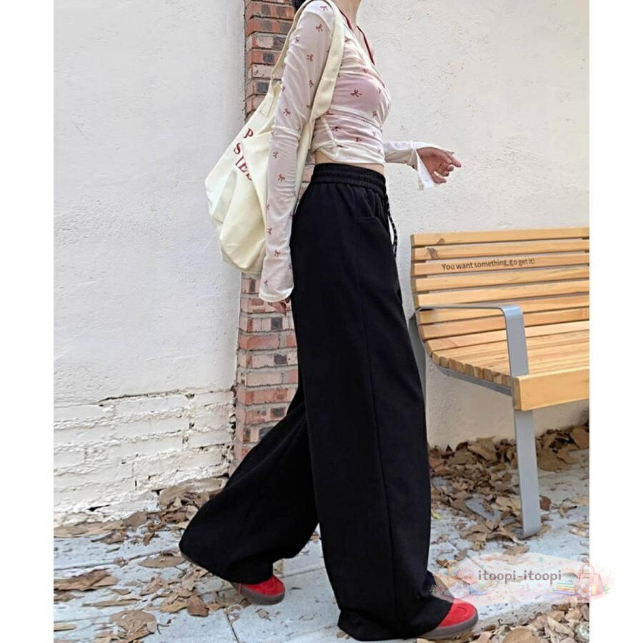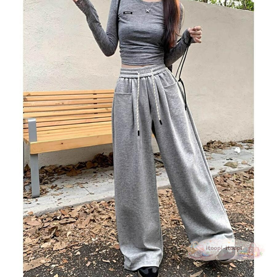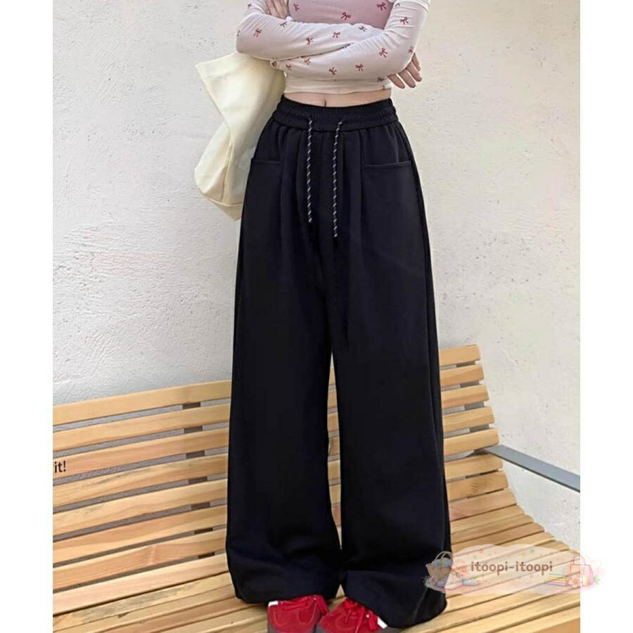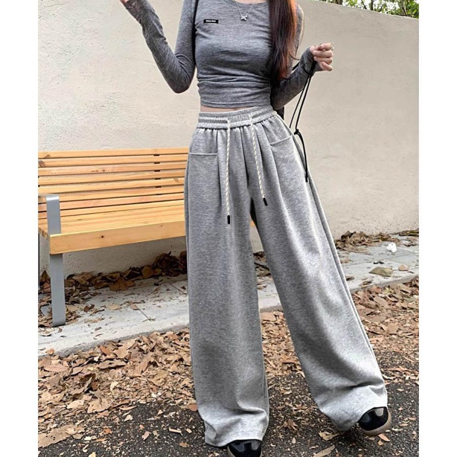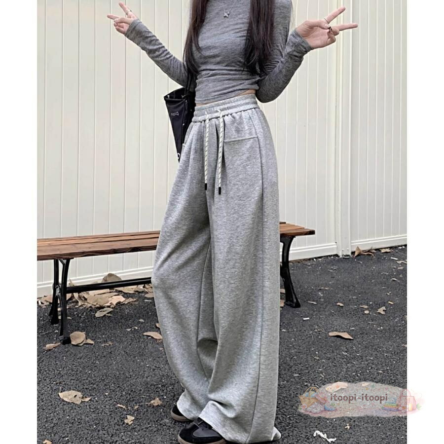ワイドシルエットシンプルスウェットパンツロングパンツ