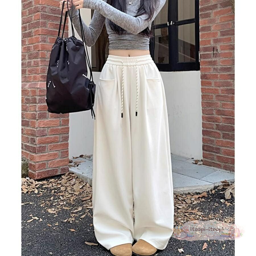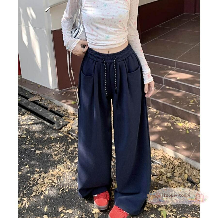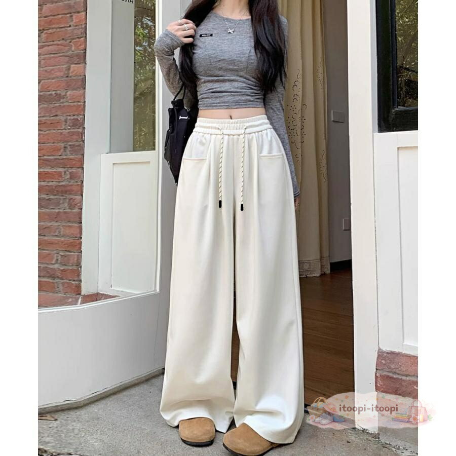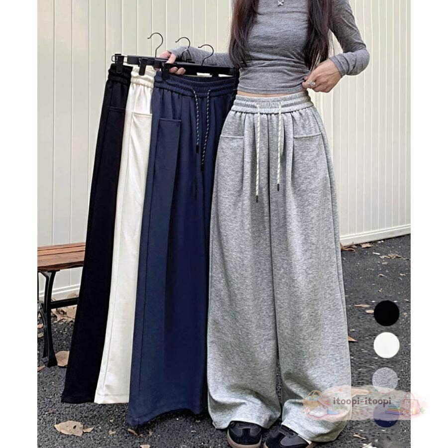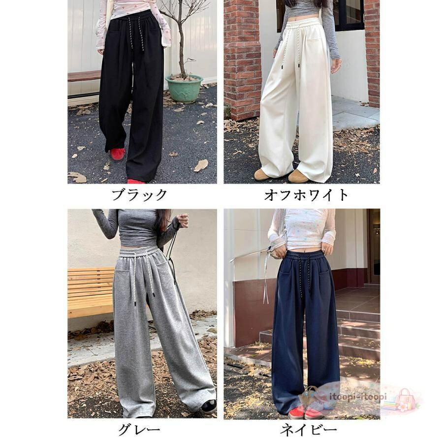 ワイドシルエットシンプルスウェットパン レディースファッション 新登場! ブラック グレー オフホワイト ネイビー L S XL M