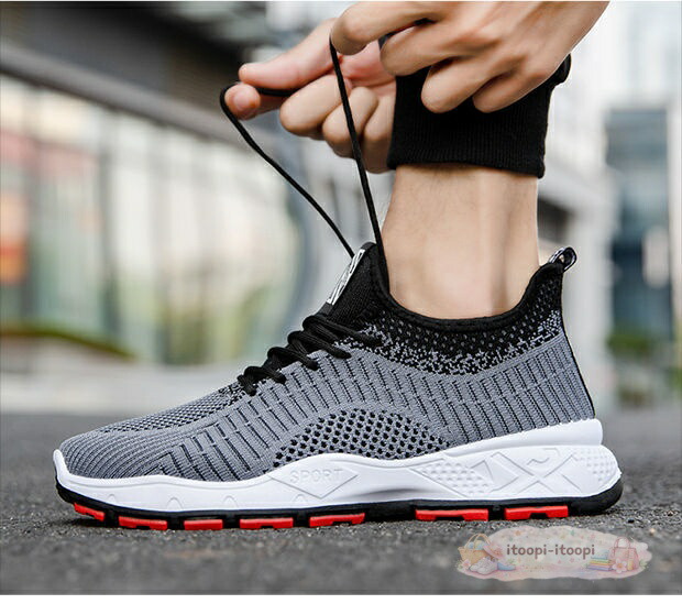 メンズ スニーカー ウォーキングシュー メンズ靴 スニーカー 早い者勝ち ブラック&レッド グレー ベージュ 39(24.5cm) 40(25cm) 41(25.5cm) 42(26cm) 43(26.5cm) 44(27cm)