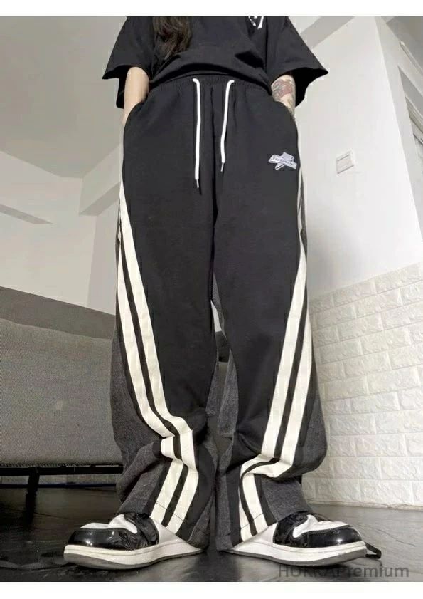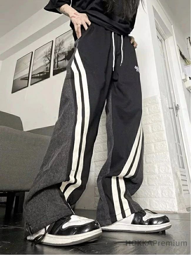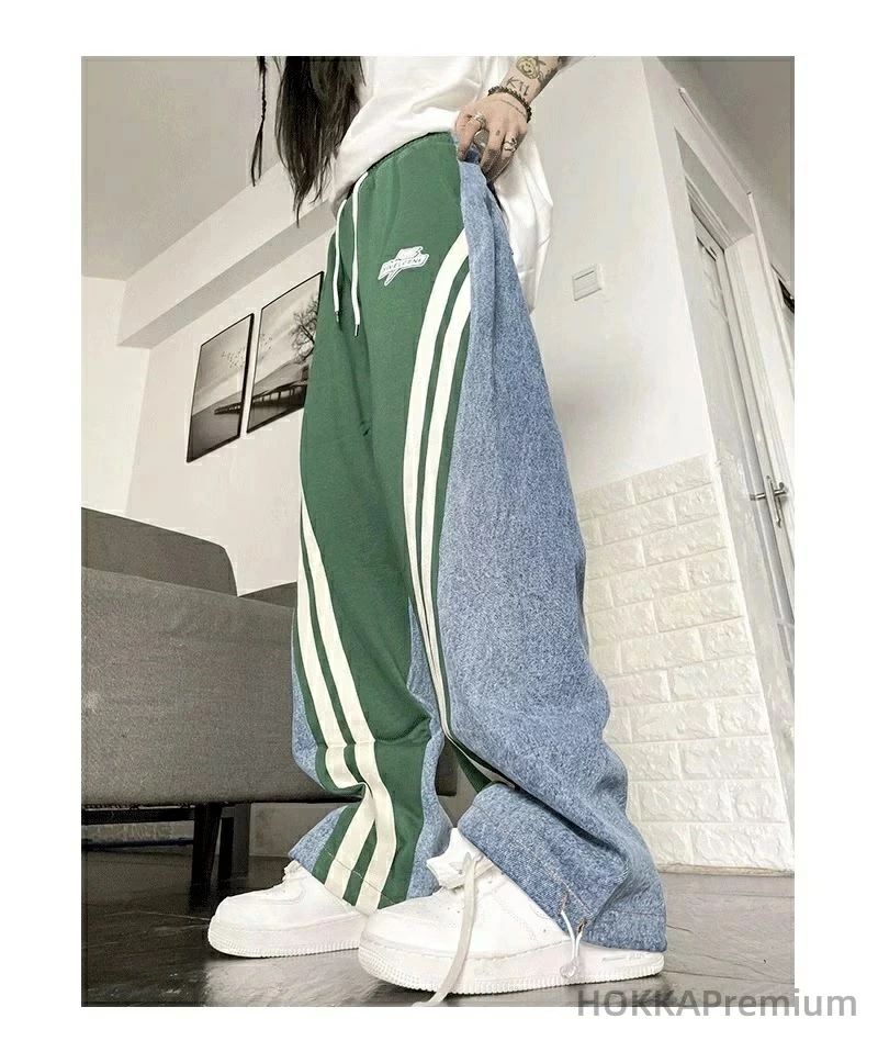 レディース ボトムス スウェット デニムパンツ 異素材MIX ジャージ素材 切替 ワイドパンツ カジュアル ハイウエスト スポ ストリート系