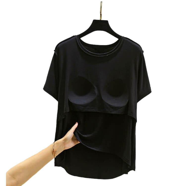 胸が目立たないようにパッドが付いた半袖Tシャツ。