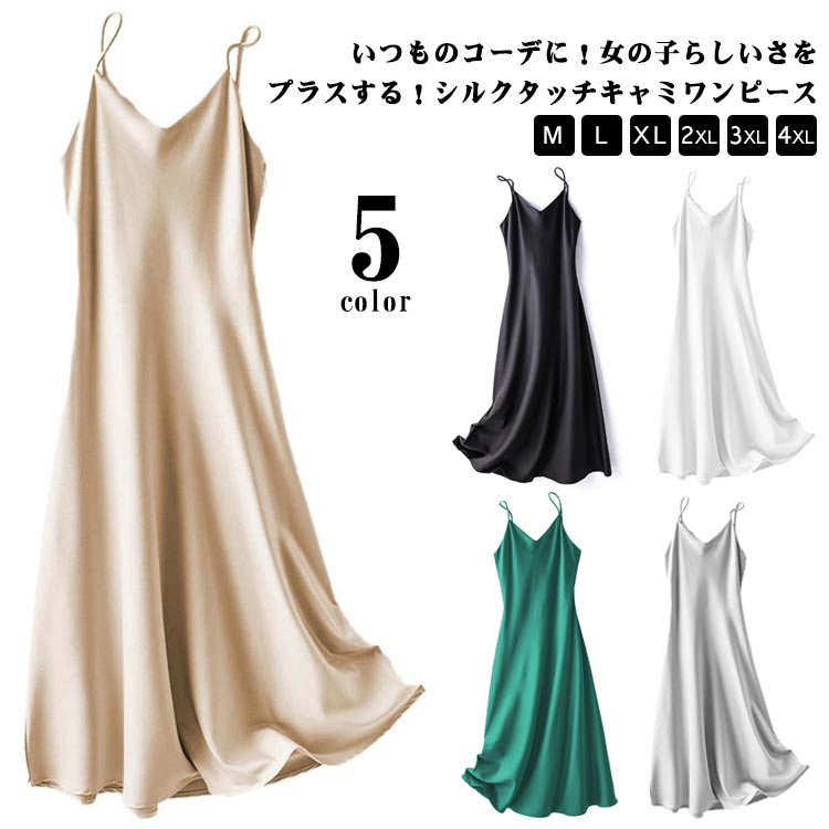 キャミソール 無地 インナー ワンピー レディースファッション 続々登場 ブラック シャンパン ホワイト グリーン シルバー M L XL 2XL 3XL 4XL